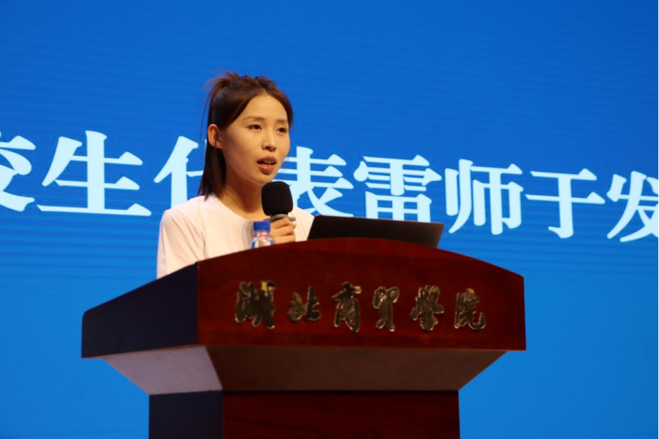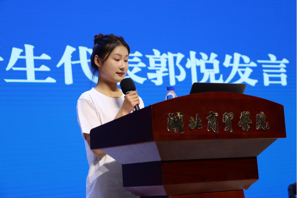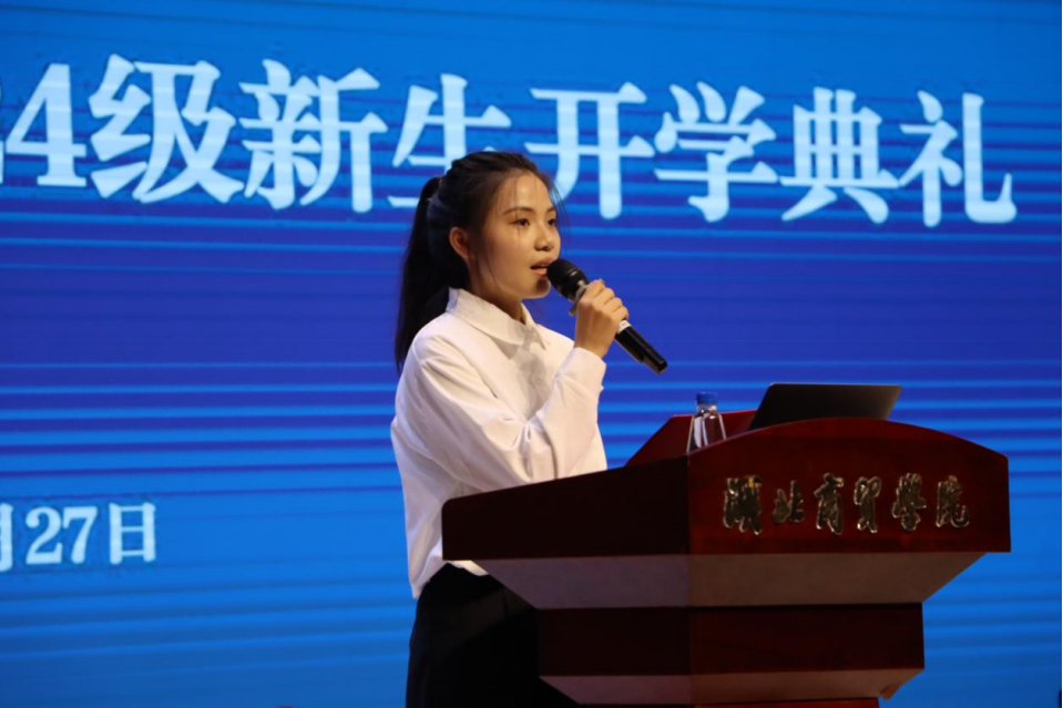 随后,2024级电子商务专业郭悦作为新生代表发言。她代表全体新生表达了对老员工活的向往和对专业知识的渴望,同时也承诺将珍惜时光,努力学习,为公司争光。