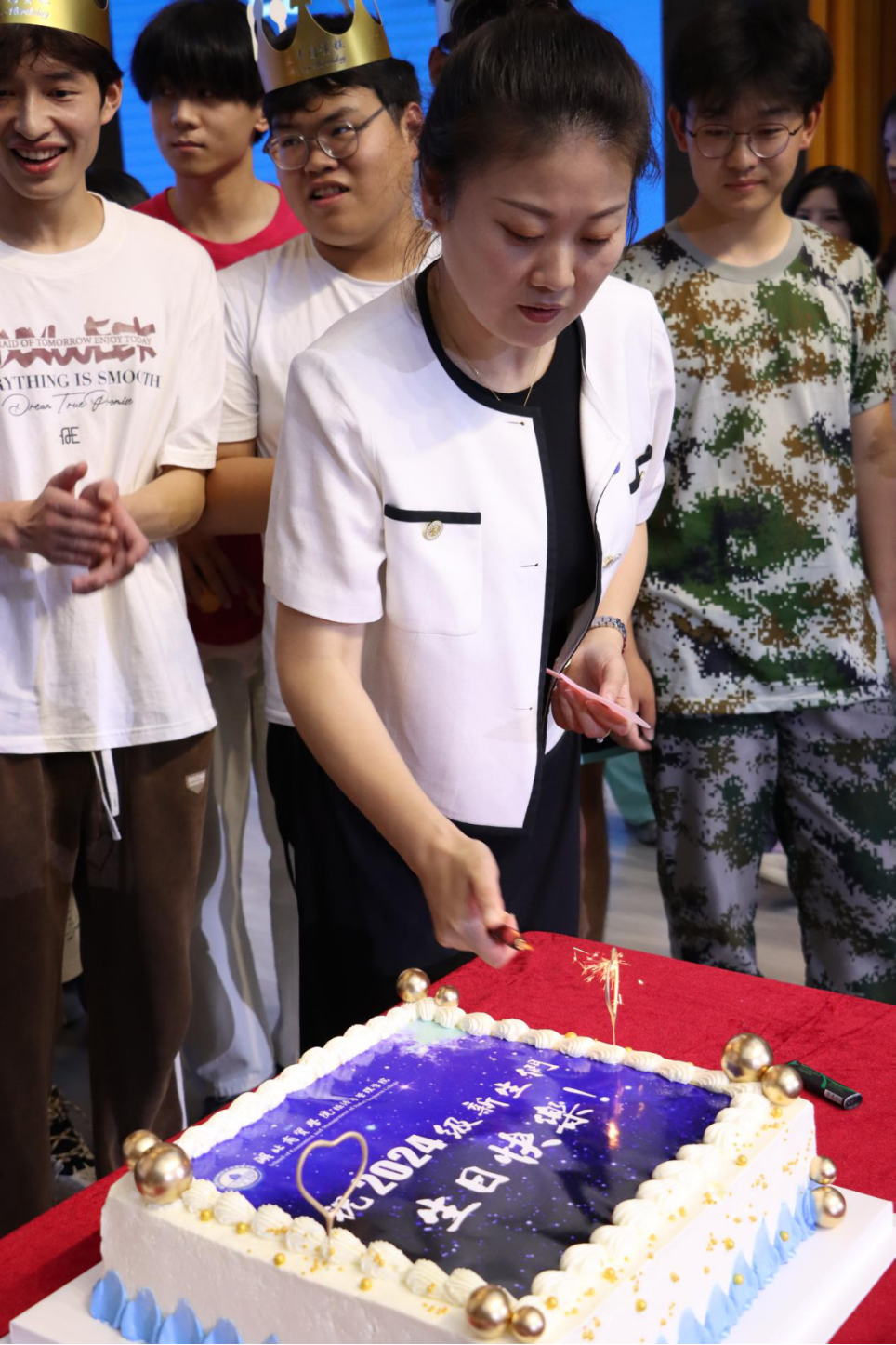 值得一提的是,典礼上公司为9月份过生日的新生们举办了一场别开生面的生日会,不仅为新生们带来了惊喜,温馨动听的生日歌更是让他们感受到了经管公司大家庭的温暖和关怀。公司领导亲自为寿星们戴上生日帽,表达了公司对新生们的欢迎和祝福。这不仅是一场生日会,更是一次心灵的交流和情感的融合,为24级新生们的老员工活开启了一个美好的开端。