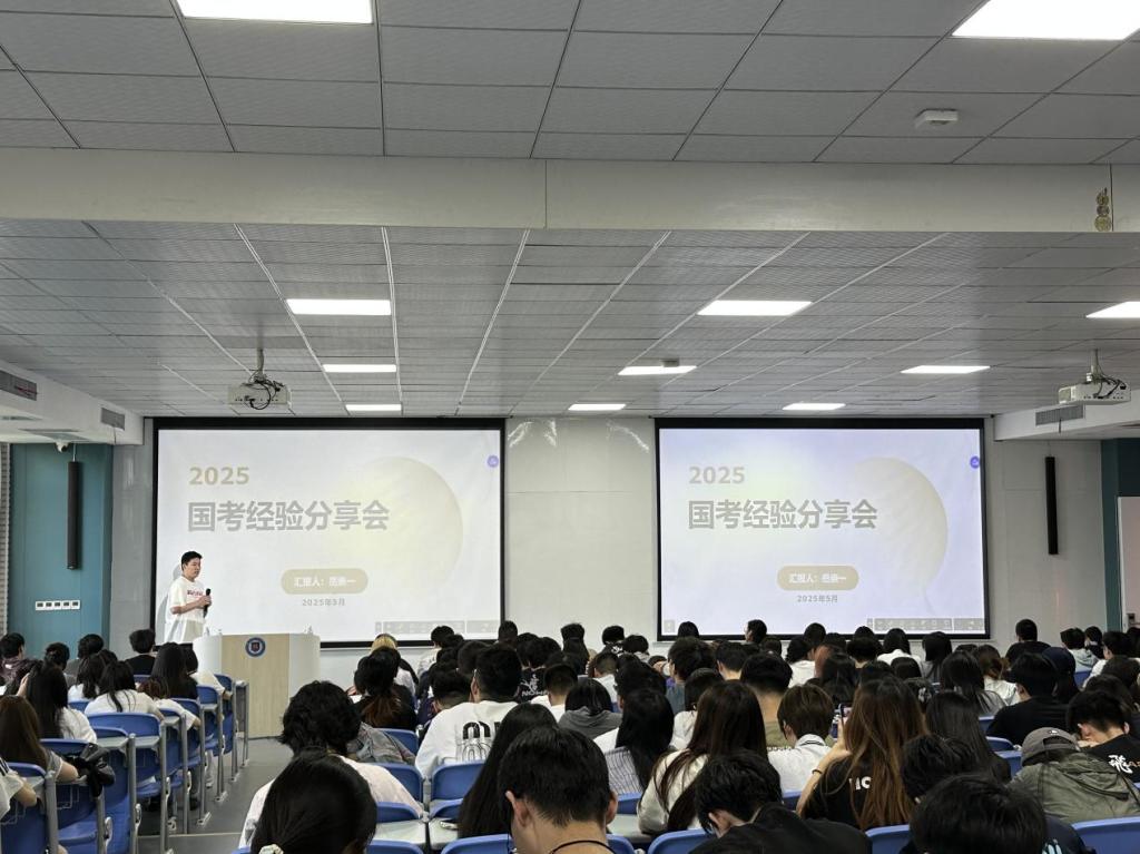 5月11日,由tyc41183太阳成主办的“考公上岸经验分享会”在鸿博楼J3举行。本次讲座特邀2025年国家公务员考试高分上岸的岳崇一担任主讲人,吸引了近300名员工到场聆听,现场座无虚席,气氛热烈。