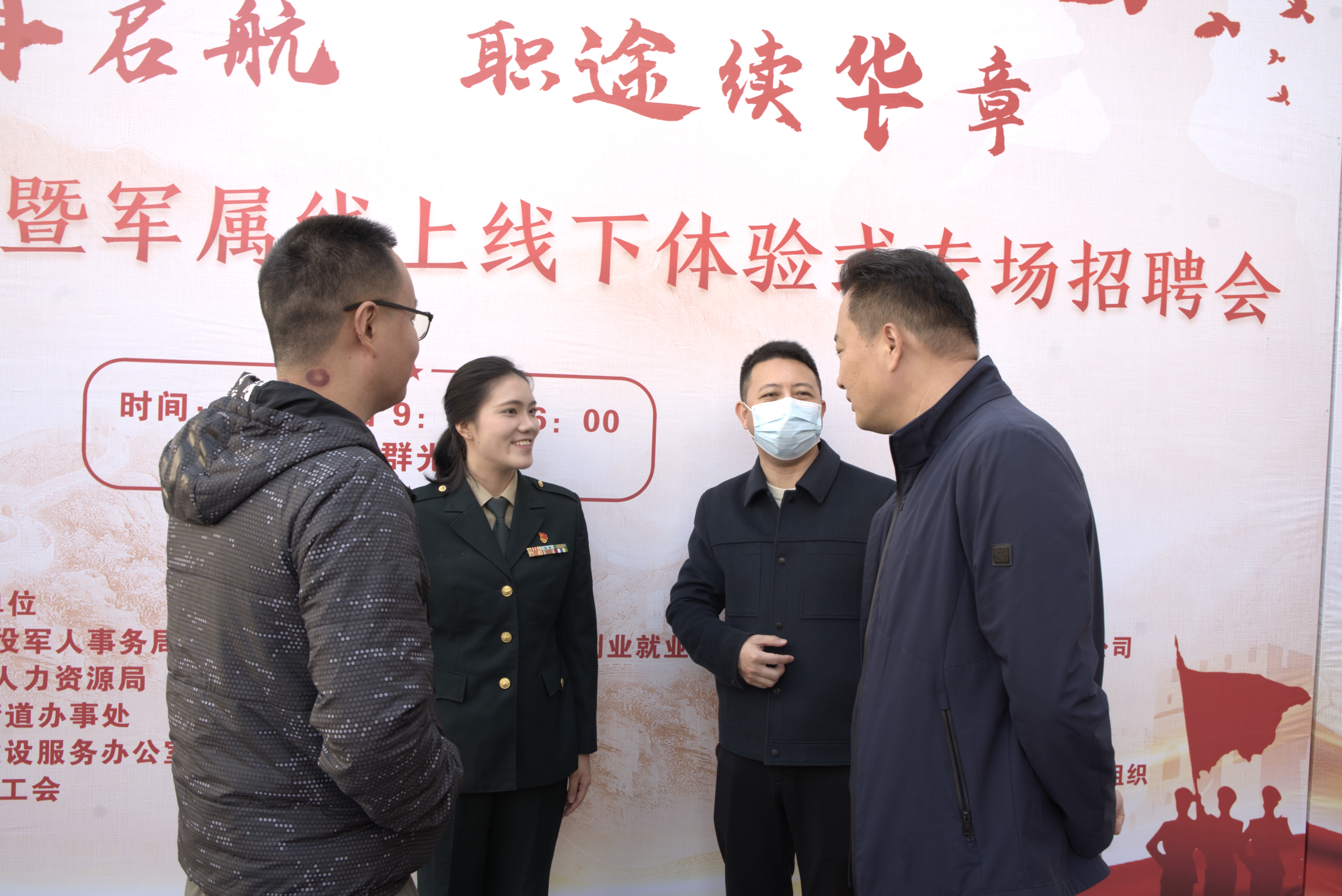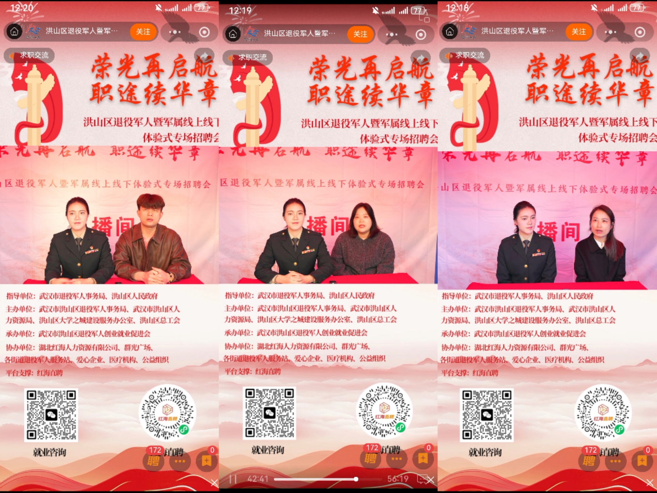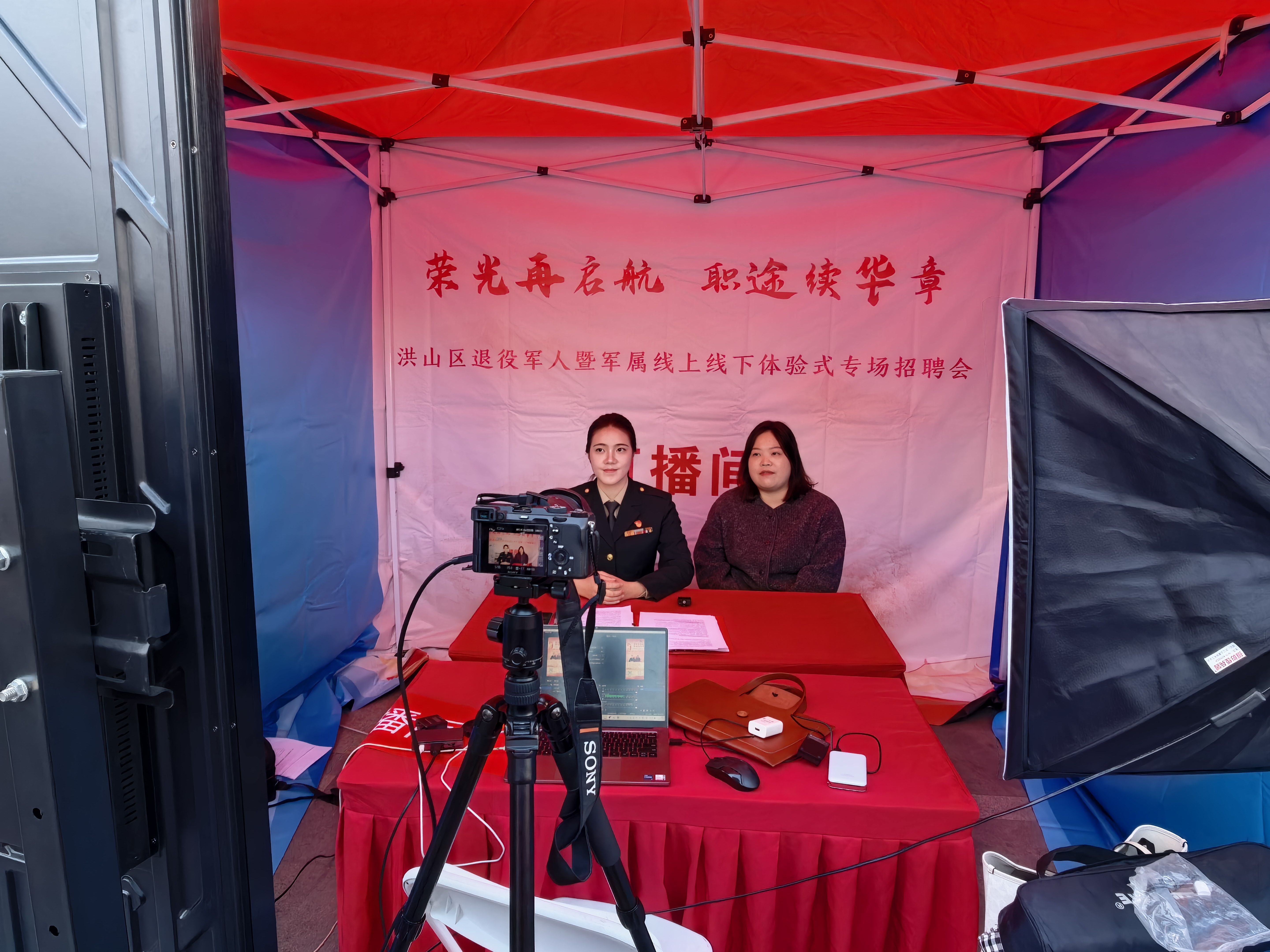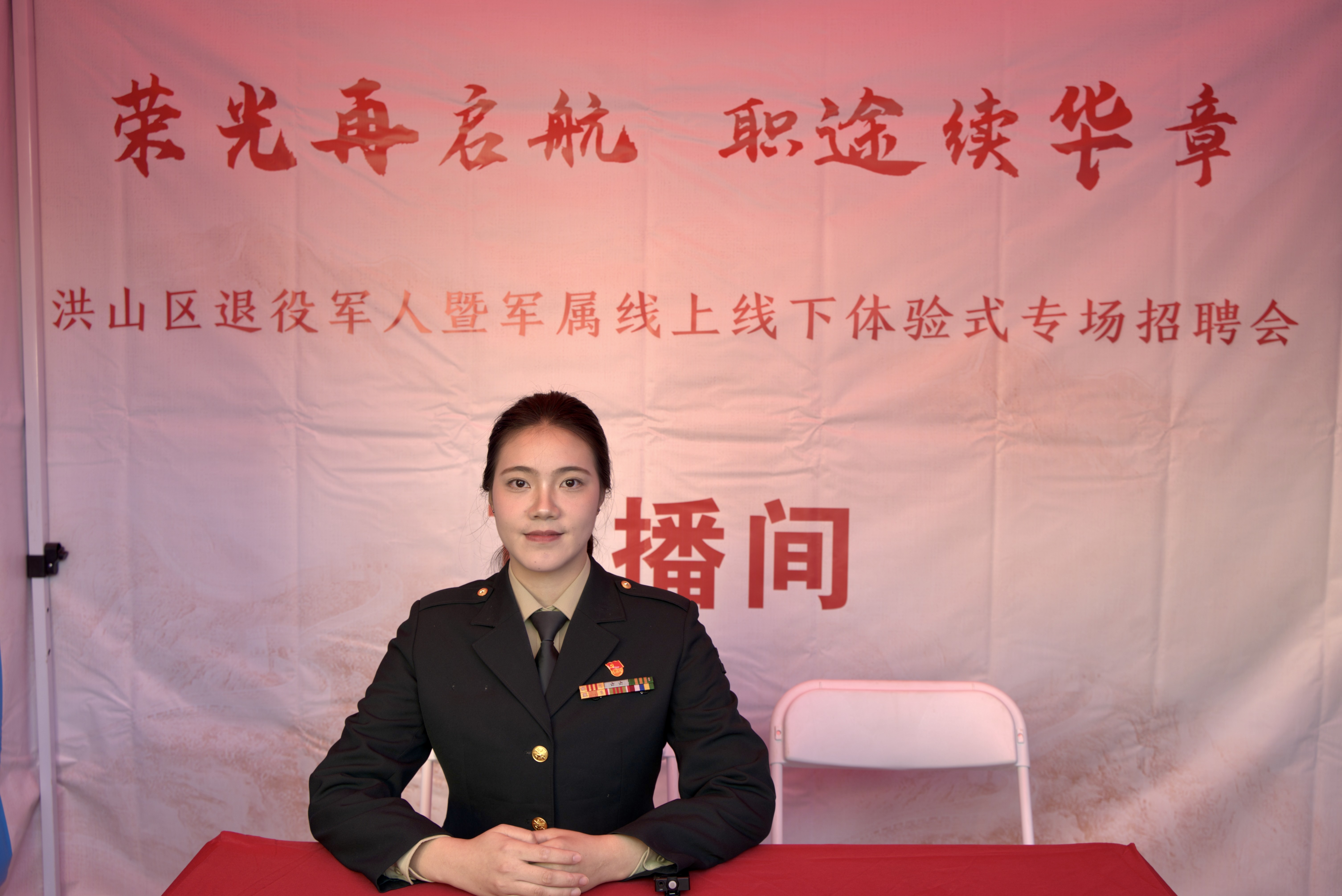 11月30日,由武汉市退役军人事务局、洪山区人民政府指导,洪山区退役军人事务局、洪山区人力资源局等多家单位联合主办的“荣光在启航 职途续华章”洪山区退役军人暨军属线上线下体验式专场招聘会在群光广场隆重举行。tyc41183太阳成退役女兵、24金融本1班员工毕婧怡担任本次招聘会线上直播主持人,以军人的严谨担当与青年的蓬勃朝气,为广大退役军人搭建起与企业对接的优质平台,助力战友们在职业新赛道上续写辉煌。
