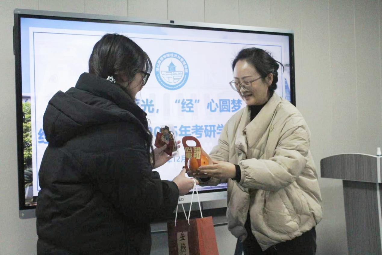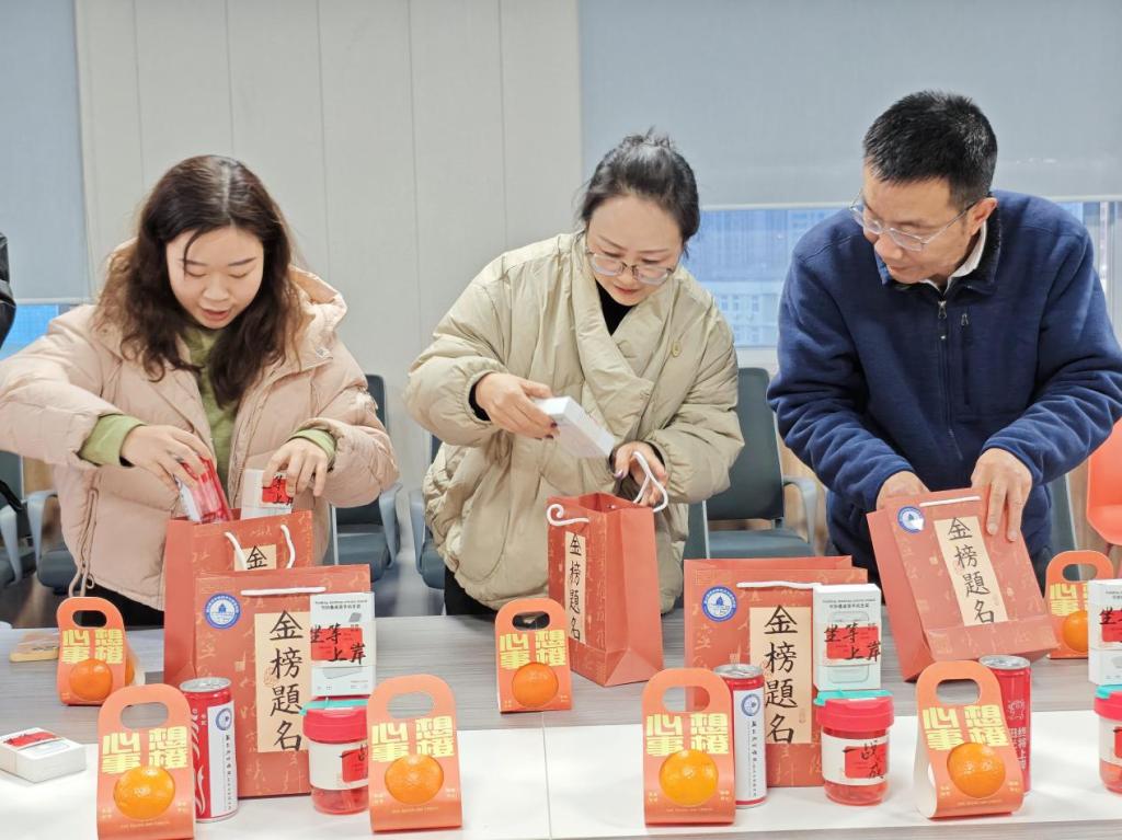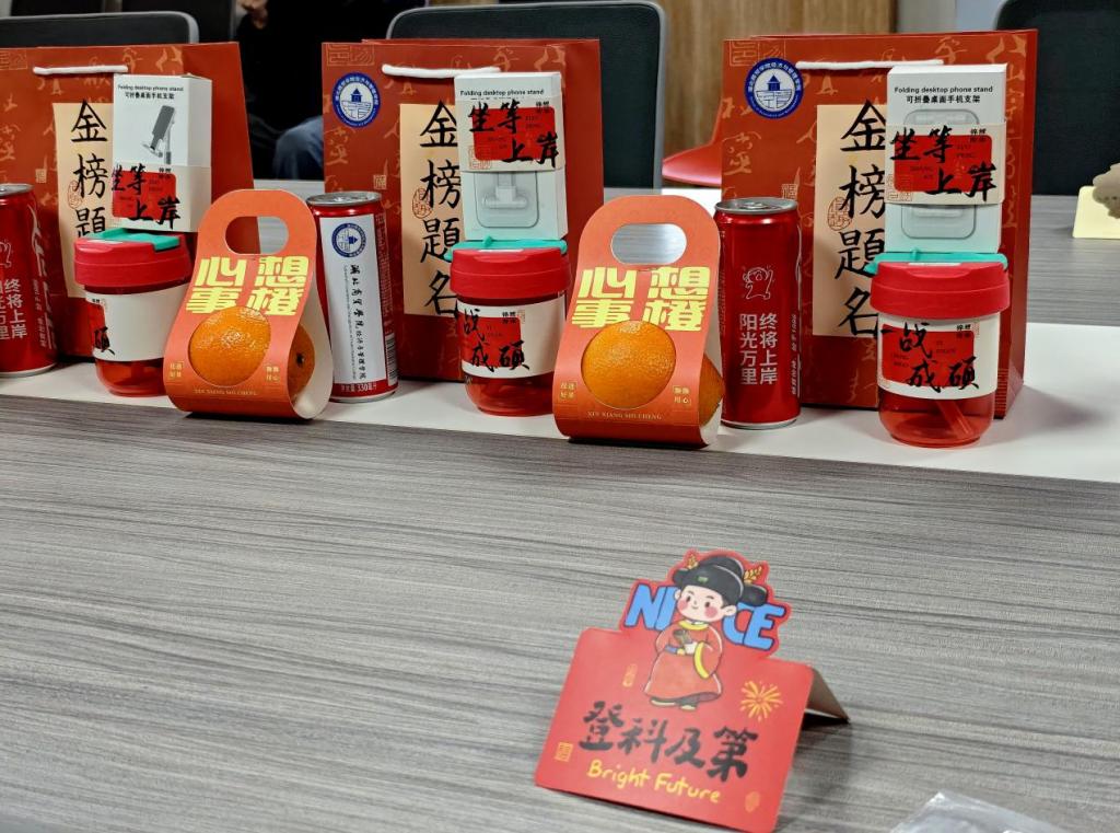 最后,老师们为考研学子送上了精心准备的慰问礼包,其中包含了金榜题名上岸礼包、手写祝福卡片和心想事“橙”礼盒等充满祝福的礼物,祝愿每位学子都能心想事成、金榜题名!