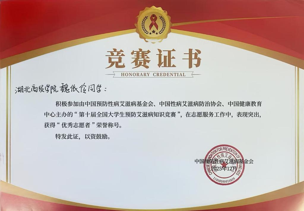 此次竞赛由中国预防性病艾滋病基金会、中国性病艾滋病防治协会、中国健康教育中心联合主办,旨在向广大青年员工普及艾滋病防治知识,提升自我保护意识与社会责任感。通过线上线下相结合的方式,积极开展防艾宣传,组织主题宣讲、推送科普内容,累计发动数百名师生参与竞赛答题与防艾知识学习,高效的组织工作让其成功摘得“优秀组织单位”称号。