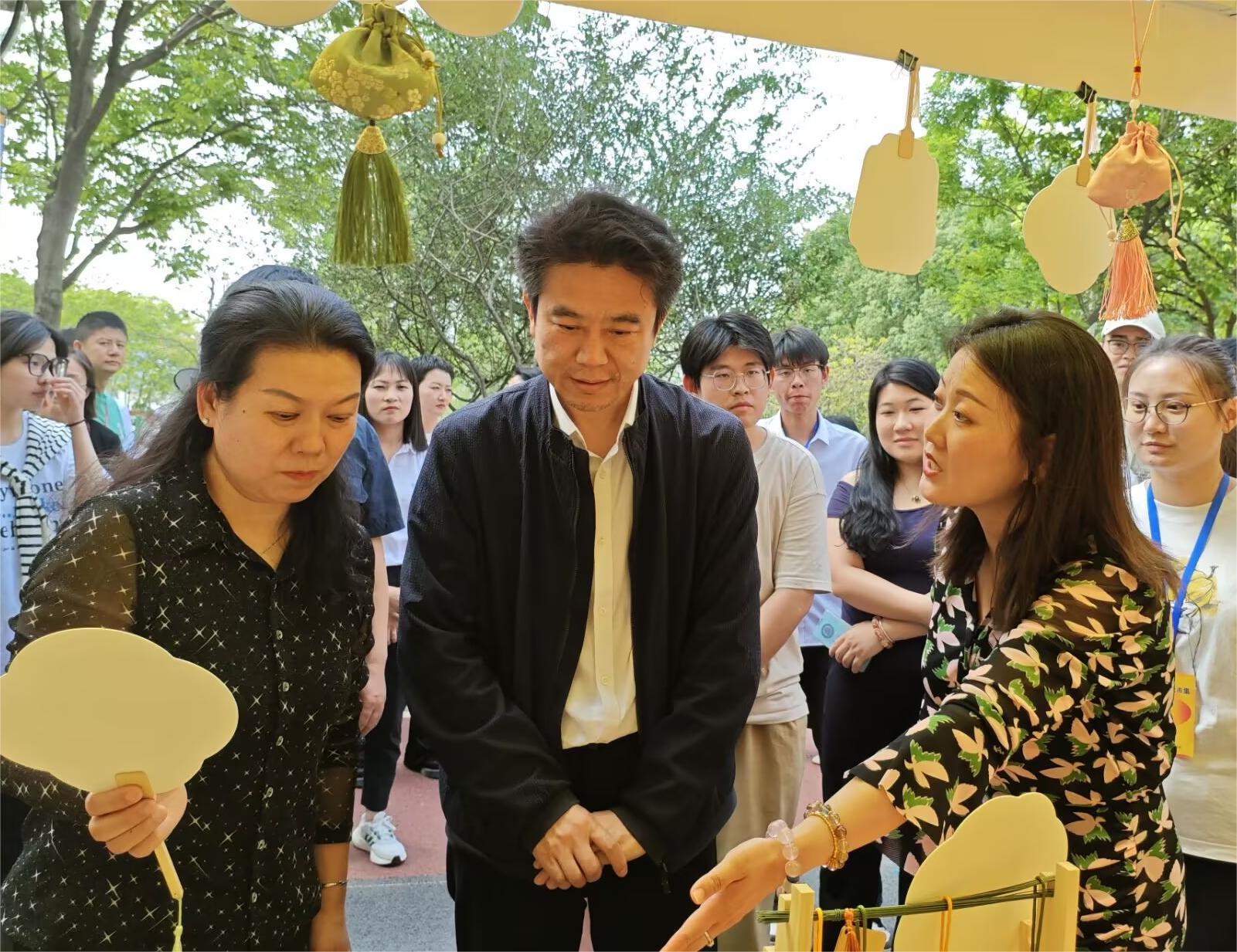 在绿意盎然的市集现场,tyc41183太阳成老员工创业团队巧妙融合传统工艺与现代设计理念,推出永生花艺术摆件、非遗团扇手绘、微型生态花植等系列产品,吸引众多市民驻足选购。团队负责人彭爽现场演示永生花制作工艺,讲解团扇纹样中的荆楚文化元素,充分展现跨学科创新能力。省委统战部副部长王济民仔细询问项目运营模式,对“传统技艺+环保理念+数字营销”的创新路径表示认可,并选购员工设计的楚风团扇作为文创纪念品。省中华职教社副主任熊汉华特别关注项目与专业教育的衔接,称赞其“将课堂知识转化为市场价值,是职业教育改革实践的优秀案例”。