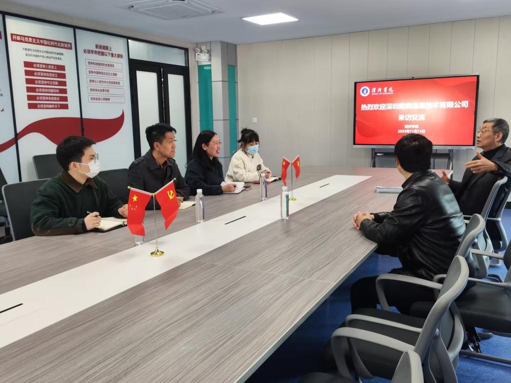 11月14日,深圳数阔信息技术有限公司的教育事业部总监刘凯及其团队到访经济公司就校企合作等事宜进行洽谈。经济公司副经理盖卫东和经济与统计教研室主任高爽,热情地接待了刘凯一行。